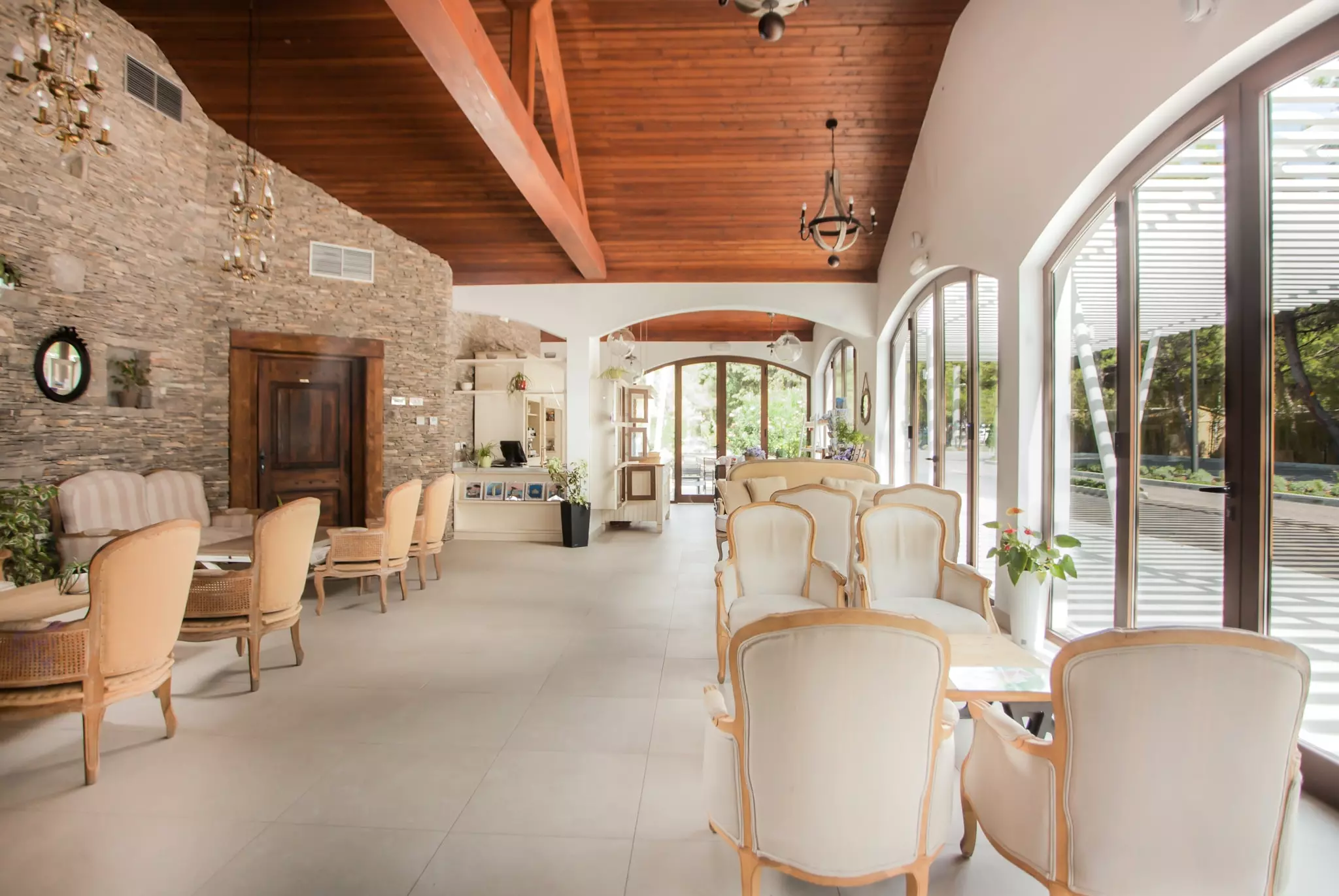 Wyposażenie: bezpłatny bezprzewodowy dostęp do Internetu (w całym kompleksie), recepcja (24 godziny) z lobby i sklep z pamiątkami, supermarket (z piekarnią), 2 a la carte restauracji (tradycyjna dalmatyńska restauracja i pizzeria), 4 bary (Sport bar, 2 bary koktajlowe na plaży, bar bilardowy), sklep z tortami i lodami, wiele placów zabaw dla dzieci, basen (świeża woda, ok. 300 m2), słoneczne maniery i parasole przy basenie (za darmo), bankomat, maszyny do ważenia (za dodatkową opłatą), bezpłatny parking (duży parking przy wejściu do kompleksu apartamentów i domów mobilnych, a namioty do parkowania obok nich), sejf (w recepcji), bankomorze, maszyny do wahing i suszarki, biuro wymiany przy recepcji, taxi linii Trogir (działający w niskich i wysokich sezonie).