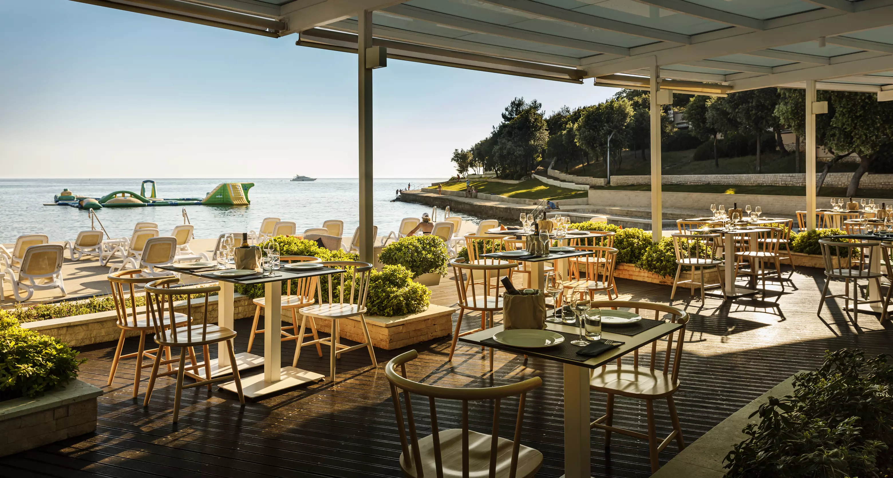 Gdziekolwiek jesteś na kempingu, będziesz cieszyć się prawdziwym krajobrazem pocztówki. Obszar wodny znajduje się naprzeciwko Adriatyku, więc można podziwiać wszystkie jego piękno podczas kąpieli lub solarium sesji na leżaku. Masz również możliwość zrelaksować się na plaży, podczas gdy maluchy bawić się na pływającym placu zabaw na zatoce. Dzieci mają również prawo do własnego basenu dzięki płytkiemu basenowi wyposażonemu w gry wodne.