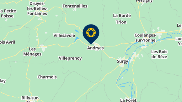 Coming from the North: Take the N151 from Auxerre direction south. In Coulanges sur Yonne, by the traficlight, go to the right. Follow the D39 direction Andryes. Follow the signs 'camping'