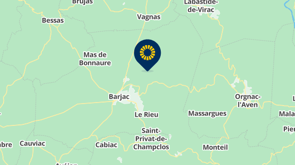 Przy wjeździe do miasta: Wjeżdżając do Barjac, jedź dalej rue Saint Michel (40 m), dojedź do Joseph Comte (20 m), następnie skręć w prawo w Charles Guynet (200 m), a następnie po prawej stronie aleję Jean Tassy.