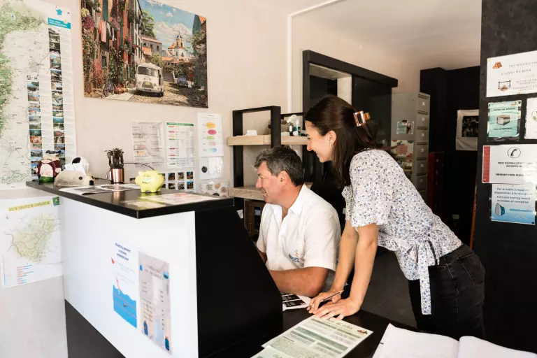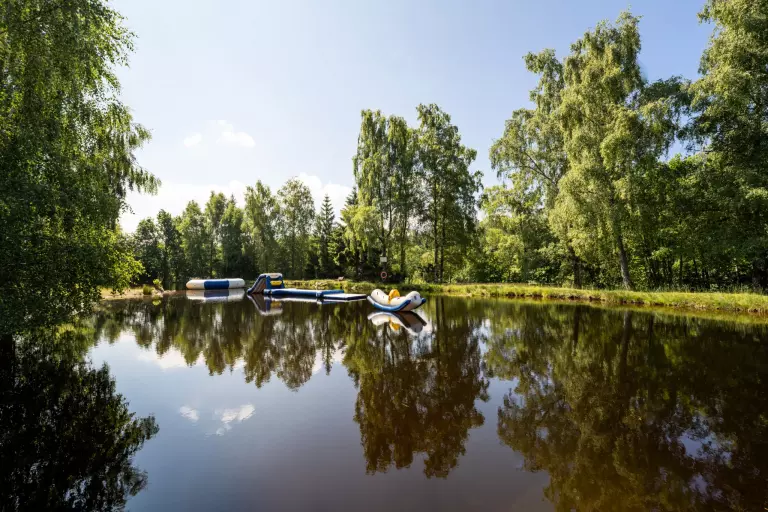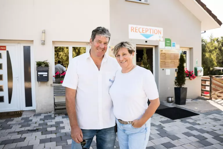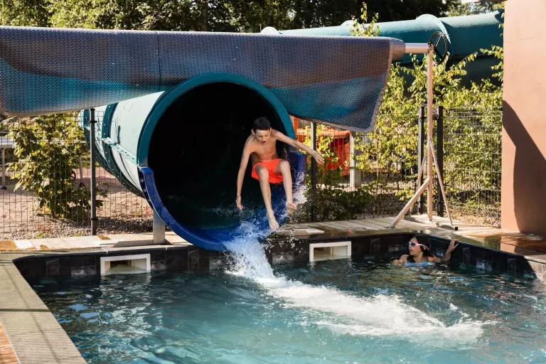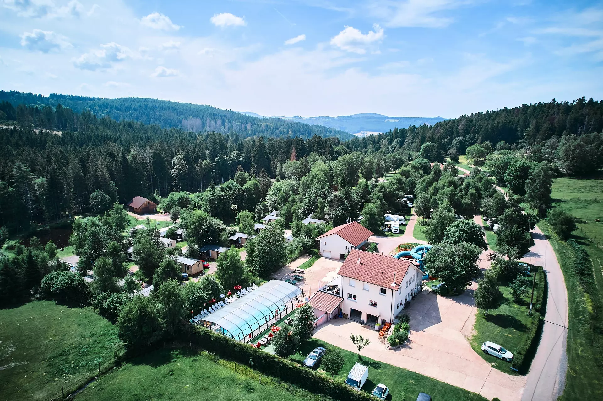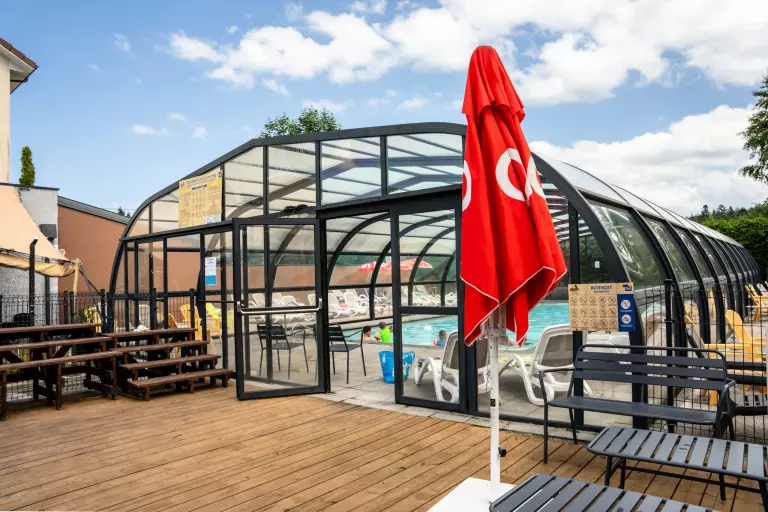 Situated in a peaceful area, the campsite is a real paradise for nature lovers. This pretty site is run by a passionate couple, Rudi and Natacha. The site has a heated indoor swimming pool, a waterslide open in July/August and small ponds, one for fishing and the other with water games. The area is very popular for hiking, mountain biking and lakes. Bar, restaurant and pizzeria are open in high season. Take advantage of the playground, football and volleyball pitch, bowling green, trampoline and table tennis tables.... You can also recharge your cars with our on-site electric charging points!