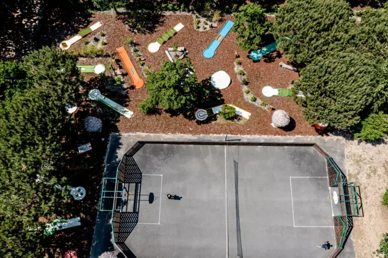 Kemping oferuje różne infrastruktury aby cieszyć się słońcem Gironde: obszar wodny składający się z dużego odkrytego basenu 500 m2, kryty podgrzewany basen w 27 °. Dzieci mają też miejsce na zabawę w wodzie dzięki pływającemu basenowi z wodnymi odrzutowcami. Wolisz być farnientą? Solarium czeka na ciebie! Chodź i zrelaksuj się na leżaku nad wodą. A dla waszego śmiechu, udogodnienia rekreacyjne: minigolf, pole multiportowe, boulevard, plac zabaw...